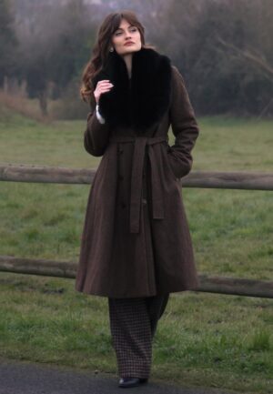 Topvintage exclusive ~ Grace A-lijn check jas in donkerbruin