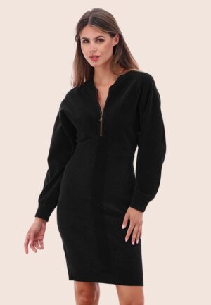 Jessy Bomber Style gebreide velours jurk in zwart