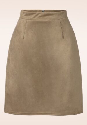Topvintage exclusive ~ Edith Suede Look a lijn rok in tabakbruin
