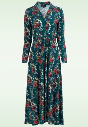 Helena Autumn Bouquet maxi jurk in petrol en multi