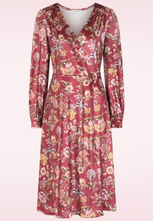 Dalida Floral fluwelen wikkeljurk in dieprood