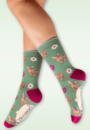Highland Cows sokken in groen