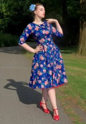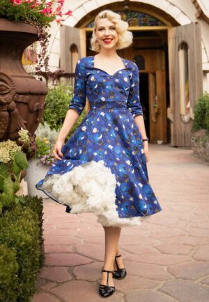 Topvintage exclusive ~ Eliane Wonderland Swing jurk in blauw