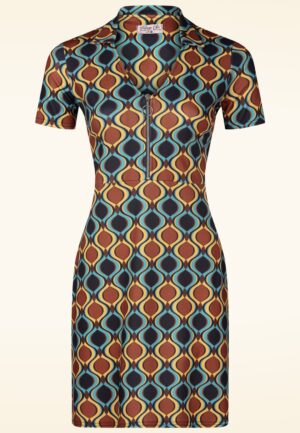 Topvintage exclusive ~ Daisy Retro jurk in bruin en blauw