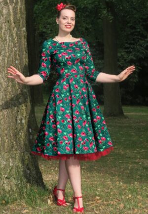 Topvintage exclusive ~ Angie flower swing jurk in groen