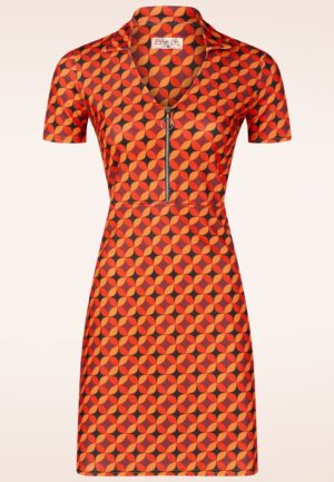 Topvintage exclusive ~ Daisy Geo Retro jurk in oranje en zwart