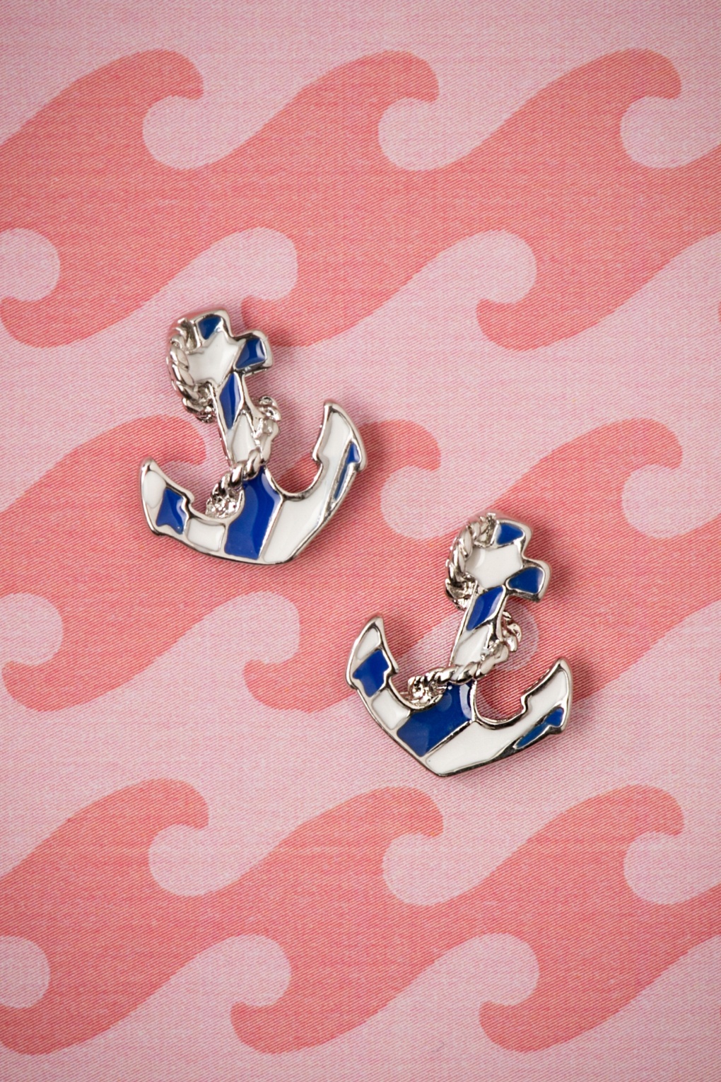 Veranker je retro pin-up look met deze 50s Anchor Earstuds in Silver! Deze kleine stekers zijn uitgevoerd in zilverkleurig metaal met een laagje, navyblauw en wit emaille. Gooi je anker uit en hengel deze sailor inspired oorstekers maar snel in je shopping bag!   *  Stekers met stoppertjes * Zilverkleurig metaal * Nikkelvrij