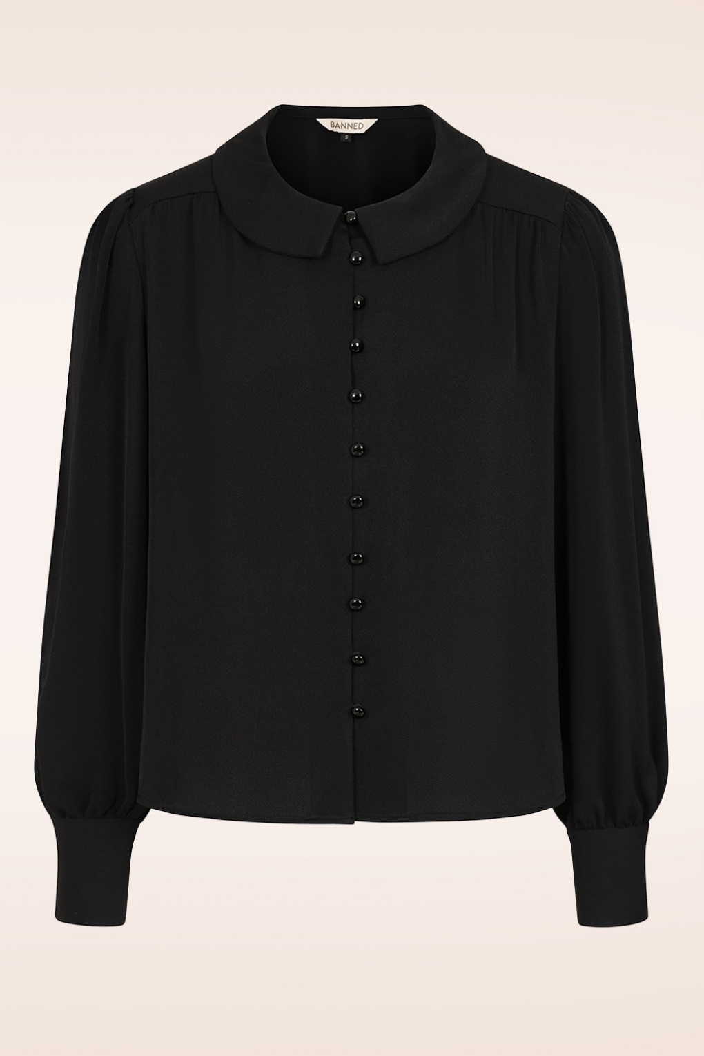 ”The secret of great style is to feel good in what you wear!” Deze prachtige blouse is uitgevoerd in een soepele, zwarte stof (stretcht niet) die een genot is om te dragen. * Afgeronde kraag * Lange pofmouwen met manchetten * Knopenrij * Lang genoeg om op een normale heupbroek te dragen