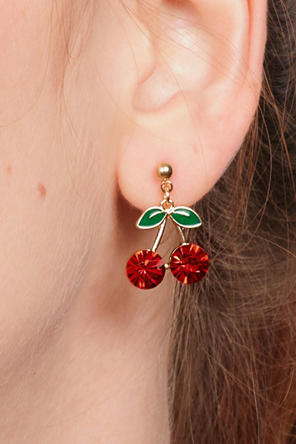Cherry, cherry baby… deze 50s Cherry Stud Oorbellen in Goud zijn rijp om in je oortjes te hangen! De stekertjes zijn uitgevoerd in goudkleurig metaal en hebben een glinsterend roodkleurig strass steentje in de vorm van een kers als hanger. Worden deze cuties ’the cherries on top of the pie’ van je juwelen collectie?! * Goudkleurige stekertjes * Strass steentje * Nikkelvrij * Hypo-allergenic * Match met de bijpassende ketting voor een complete look!