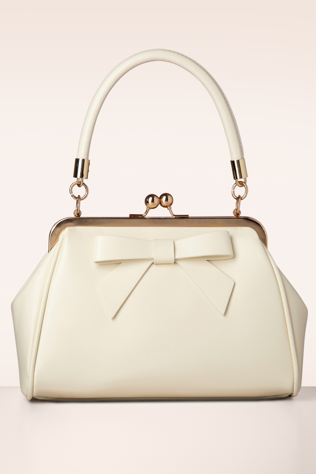 ”Just a daydream away!” Dit kleine zusje van de klassieke American Vintage bag heeft een opvallende goudkleurige metalen klipsluiting voor een echte vintage look en is uitgevoerd in crèmekleurig mat imitatie leder afgewerkt met een schattige strik. * Small sized * Klipsluiting * Binnenvak met 3 extra vakjes, waarvan 1 met rits * Afneembaar hengsel * Kan crossbody gedragen worden * Volledig gevoerd * Groot genoeg voor je telefoon, sleutels, en een kleine portemonnee