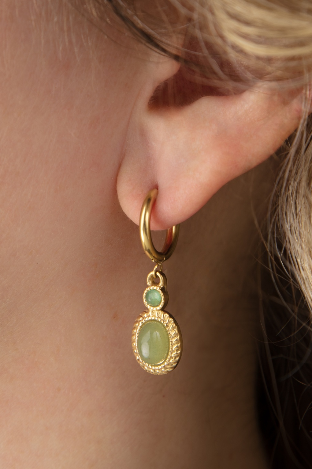 ”Jewellery always fits!” Dus er is geen enkele reden om deze schattige oorbellen niet te kopen! 😉 Goudkleurige ringetjes voorzien van mooie groene agaat edelsteentjes. De groene agaat heeft als werking je zelfvertrouwen te versterken en stimuleert blijdschap en harmonie. * Vergulde (14K) ringetjes * Nikkelvrij