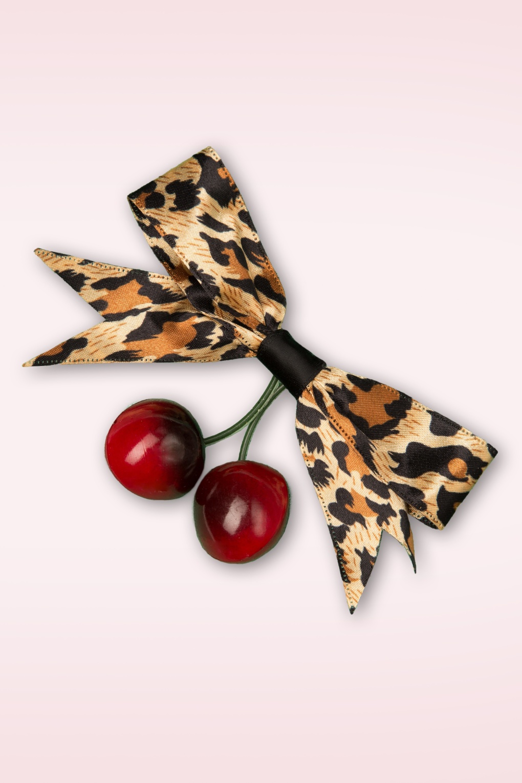 Dit haarspeldje is echt om op te eten! De kersjes zijn uitgevoerd in donkerrood kunststof met een prachtige leopard strik in satijn look op een zilverkleurige clip. Creëer de mooiste retro kapsels of clip haar vast aan je blouse voor een speelse finish! 😉 * Kersjes * Strik * Zilverkleurige clip