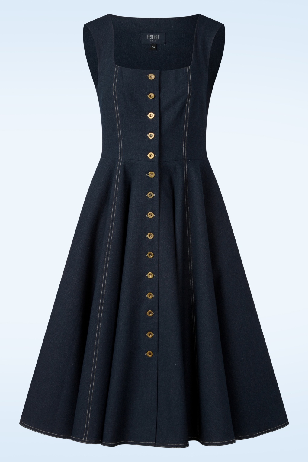 De Heide pinafore jurk combineert klassieke lijnen met moderne functionaliteit. De vierkante halslijn en praktische steekzakken geven haar een tijdloze uitstraling, terwijl de soepel vallende rok prachtig meebeweegt bij elke stap. Contrasterende stiksels benadrukken het silhouet en zorgen voor een verfijnde, ambachtelijke touch. De jurk is uitgevoerd in een hoogwaardige denim katoenmix in donkerblauw, wat haar een krachtige en veelzijdige look geeft. * Mouwloos * Vierkante halslijn * Kwalitatief hoogwaardige stof * Knopenreeks voorzijde * Voorzien van zakken! * Valt bij een lengte van 1,70 m over de knie