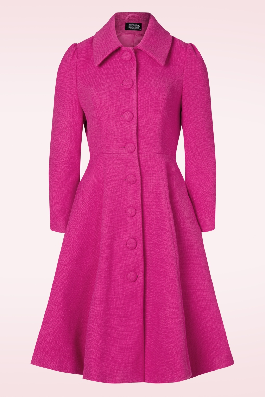 “Rule the cold in a coat this bold!” Met deze felroze swing jas maak je gegarandeerd een statement, waar je ook gaat. Ze heeft een elegant en vrouwelijk swingmodel met een puntige kraag en grote stoffen knopen. Uitgevoerd in een stevige maar soepele stofmix (zonder stretch) in een opvallende felroze tint, die je wintergarderobe meteen een vrolijke boost geeft. Stijlvol, speels en onweerstaanbaar chic! * Swing stijl * Puntige kraag * Knopenrij * Volledig gevoerd * Voorzien van zakken! * Valt over de knie bij een lengte van 1,70 m * Exclusief bij Topvintage verkrijgbaar