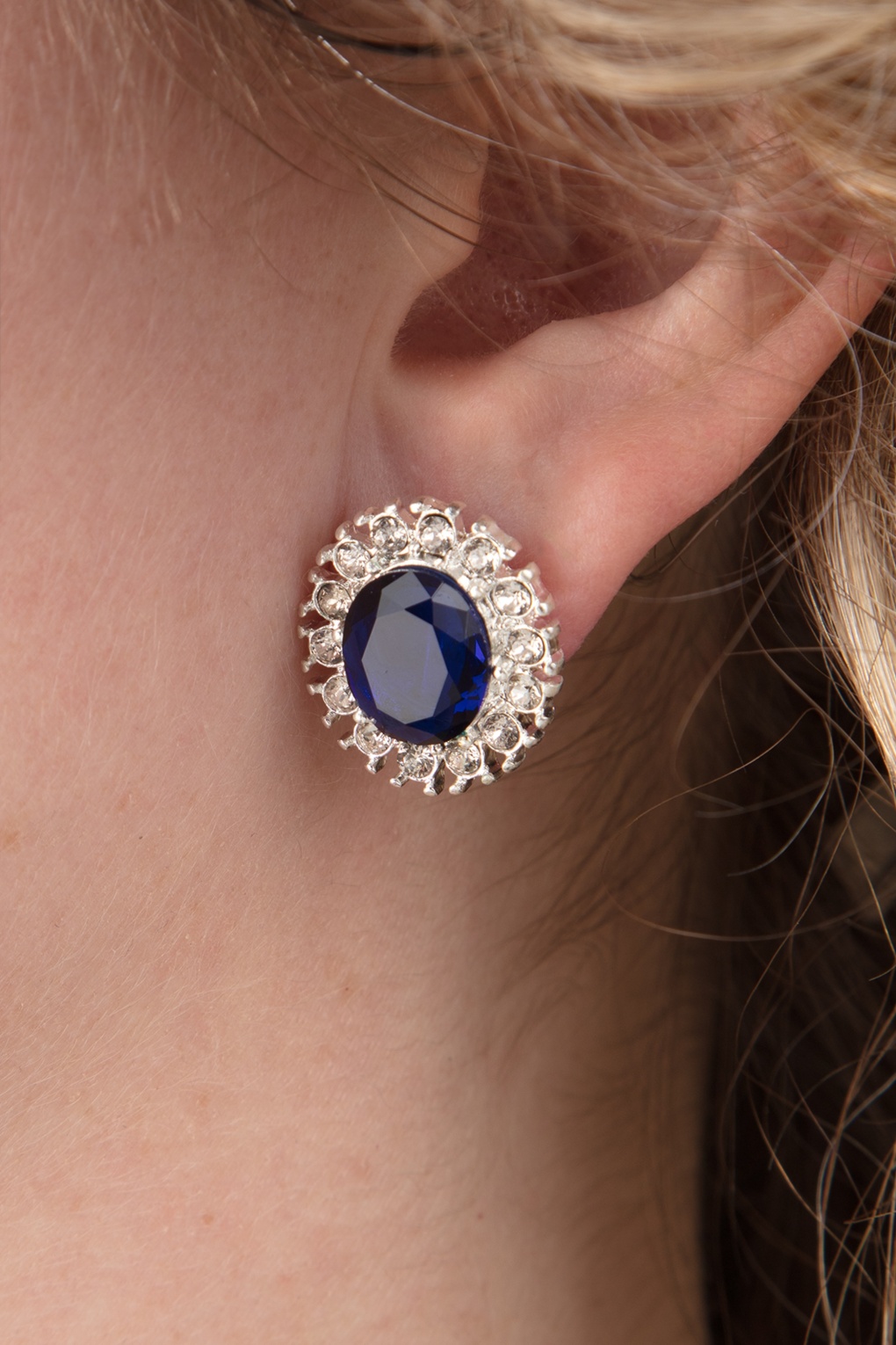 De sieraden van prinses Diana waren even gevarieerd als mooi. Ze had oog voor stijl en gaf klassieke items een moderne uitstraling. Dit was dan ook de inspiratie voor deze Lady Diana Earstuds in Sapphire Blue. Zilverkleurige, hypoallergene, handgemaakte knopjes met een saffierblauwe steen omhuld door sprankelende strass steentjes voor een vleugje glamour! ”Be loyal to the royal within you!”   * Stekers * Zilverkleurig metaal  * Strass * Kristal * Handgemaakt * Nikkelvrij * Match met de bijpassende choker ketting voor een complete look!