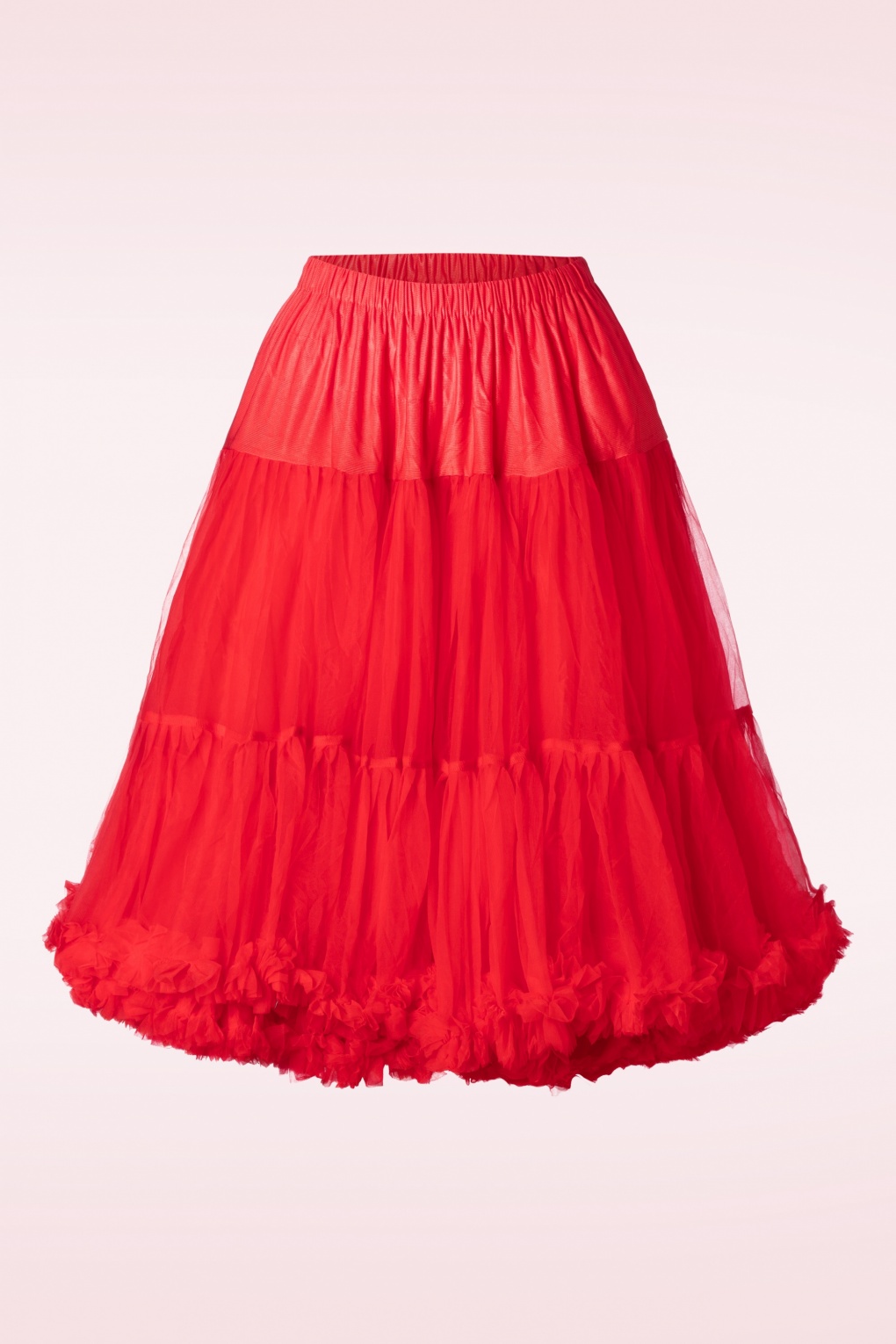 ”Behind every great twirl is a trusty petticoat!” De 2 lagen stof zorgen voor extra volume, bewegen gracieus met je mee en zijn afgezet met speelse ruches aan de onderzijde. De bovenkant is uitgevoerd in felrood tule en de onderrok is gemaakt van een glanzende sateen. Afgewerkt met een elastieken band. Deze petticoat geeft iedere swing jurk net dat beetje extra! * Geschikt voor al onze swing dresses en rokken * Elastische tailleband * Valt over de knie bij een lengte 1,70 m