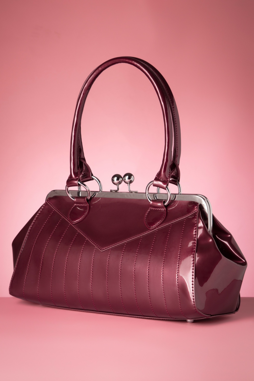 ”Table for 3. You, me and my bag!” Want deze handtas gaat voortaan altijd met je mee! Uitgevoerd in bordeauxrood imitatie lakleder met een zilverkleurige klipsluiting, korte hengsels en een los, verstelbaar hengsel. * Zilverkleurige klipsluiting * Binnenvak met 3 extra vakjes, waarvan 1 met rits * Zilverkleurige details * Wordt geleverd met een los, verstelbaar hengsel * Kan crossbody gedragen worden * Rode voering met panterprint * Beschermpootjes onderzijde * Groot genoeg voor je telefoon, portemonnee, sleutels en een make-up tasje