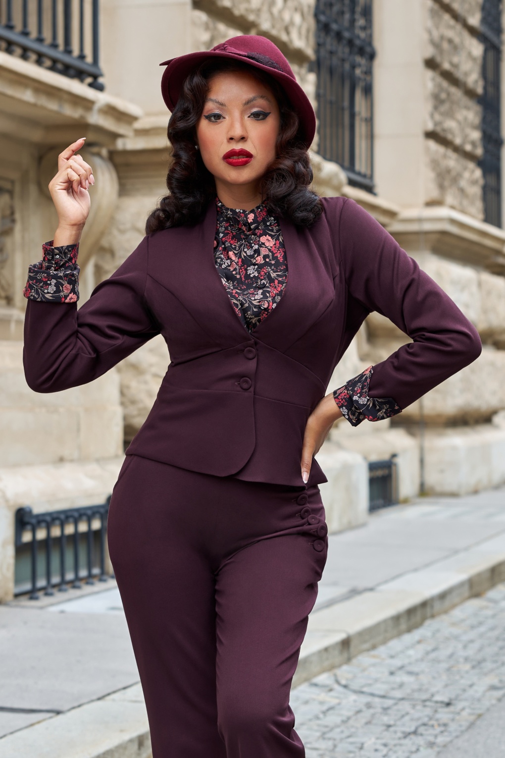 Indulge in elegance with Oheo Lavania! Deze nauwsluitende blazer is afkomstig uit de nieuwe collectie van Miss Candyfloss: ”Vintage Glam Icons”. De collectie is geïnspireerd op de glamoureuze eerste super modellen! Oheo Lavania heeft een diepe V-hals, lange mouwen met vaste gebloemde omslagjes en is uitgevoerd in een prachtig soepel en stretchy, aubergine gekleurde stofmix voorzien van een vleugje viscose. * Nauwsluitende pasvorm * Diepe V-hals * Lange mouwen met gebloemde omslagjes * Knopenreeks * Afgeronde zoom * De matching pantalon Nicola Lavania en de blouse Brina Lavania zijn apart verkrijgbaar in onze shop!
