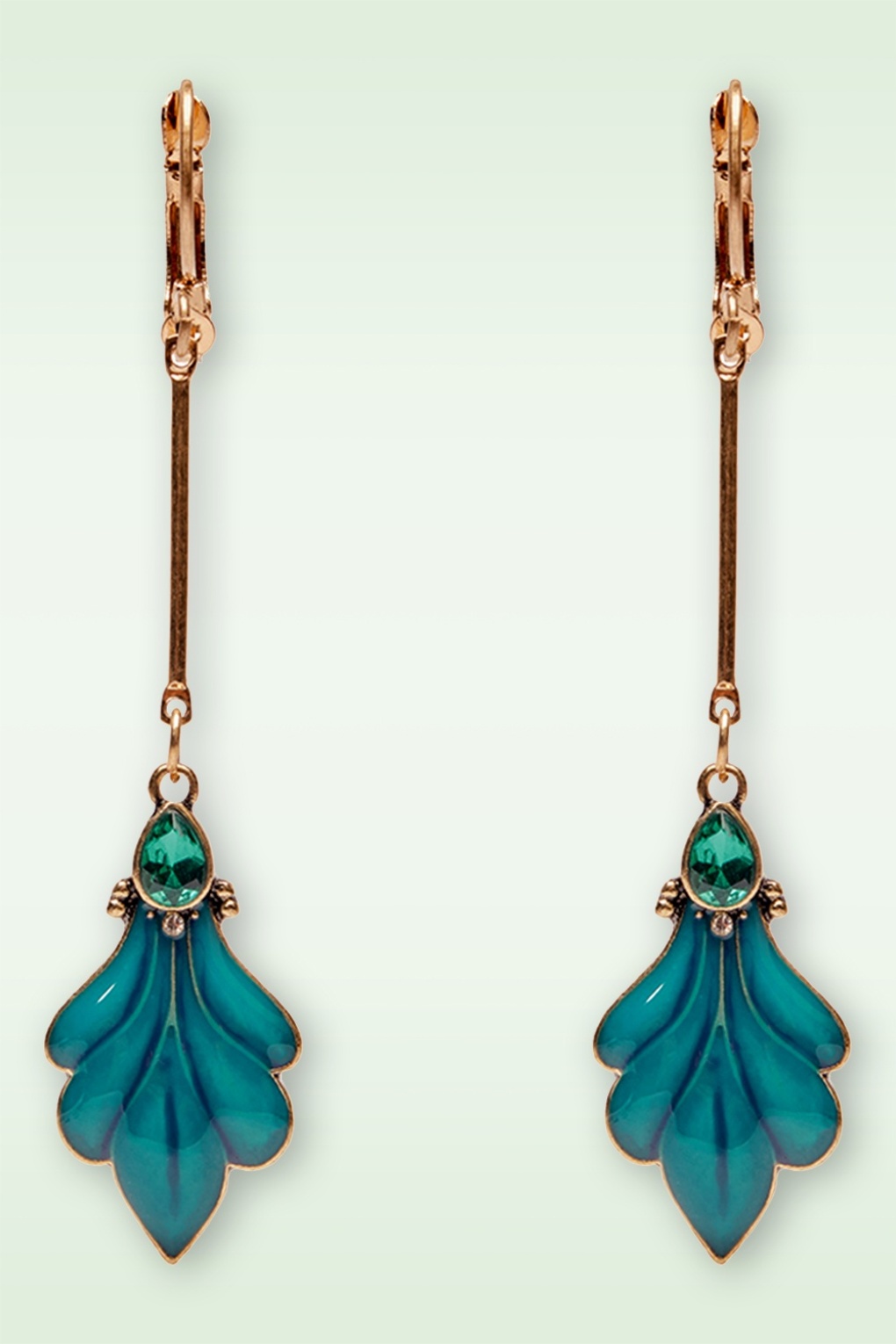 ”Adorn your ears with elegance!” Deze oorbellen zijn; klassiek, sierlijk en adembenemend mooi! Ze zijn uitgevoerd in (antiek) goudkleurig messing en zijn versierd met een hanger in de vorm van een pauwveer met tealkleurig emaille. Vergeet je haar niet op te steken want deze beauty’s mogen gezien worden!    * Messing (antiek goudkleurig metaal) * Handbeschilderd emaille * Strass steentje * Hypoallergene hangertjes * Nikkelvrij
