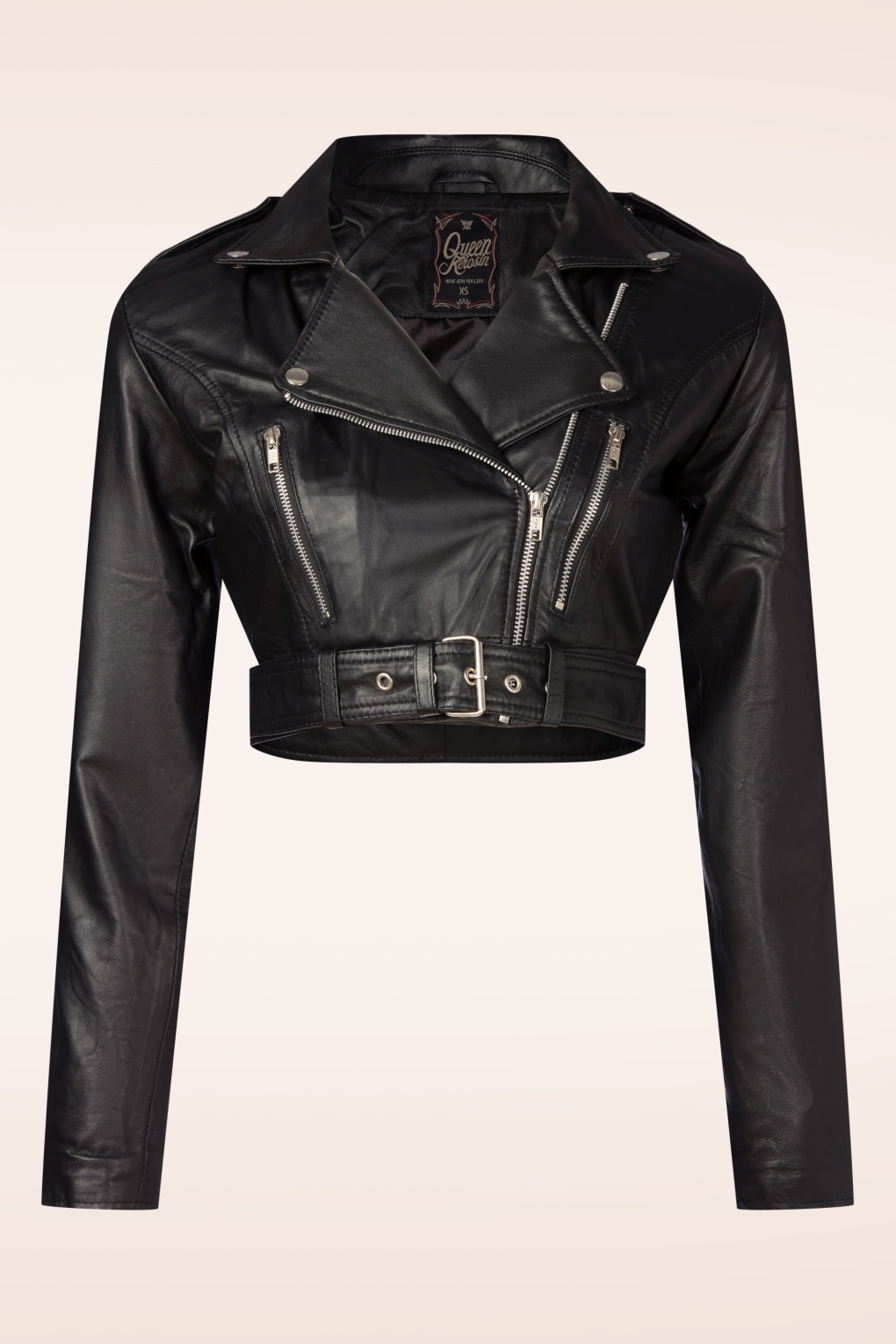 Riley cropped leren biker jack in zwart