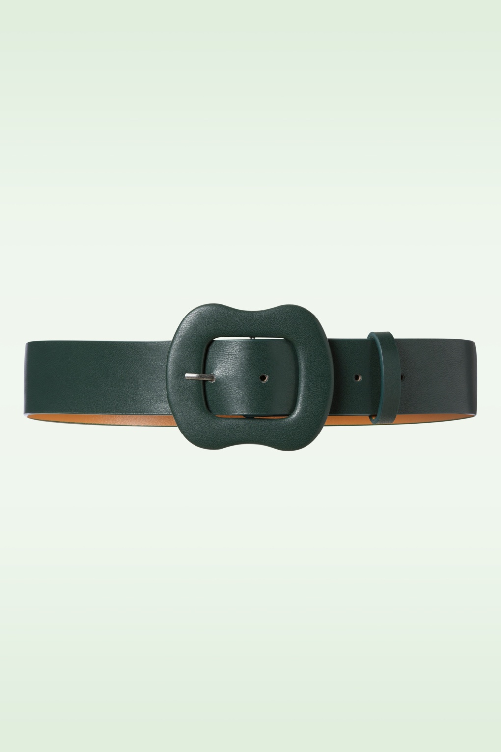 ”Buckle up!” Deze verstelbare ceintuur is uitgevoerd in bosgroen imitatieleder en afgewerkt met een opvallende gesp. * Verstelbaar * Opvallende gesp