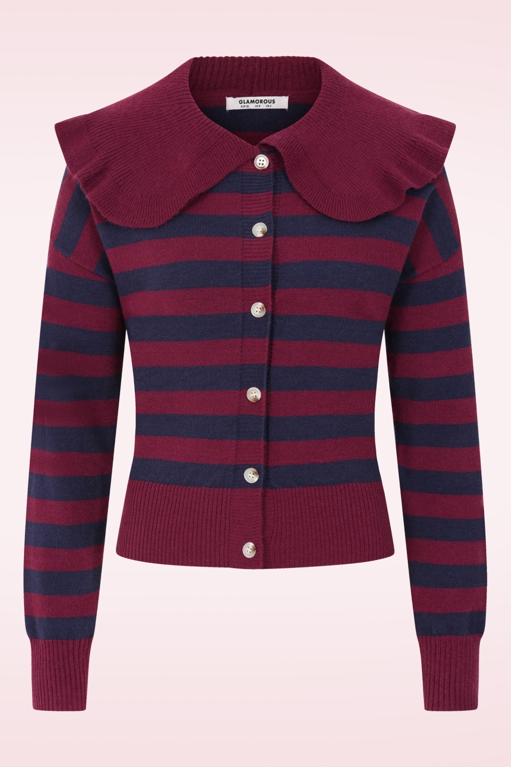 Sally gestreepte cardigan in bordeaux en marineblauw
