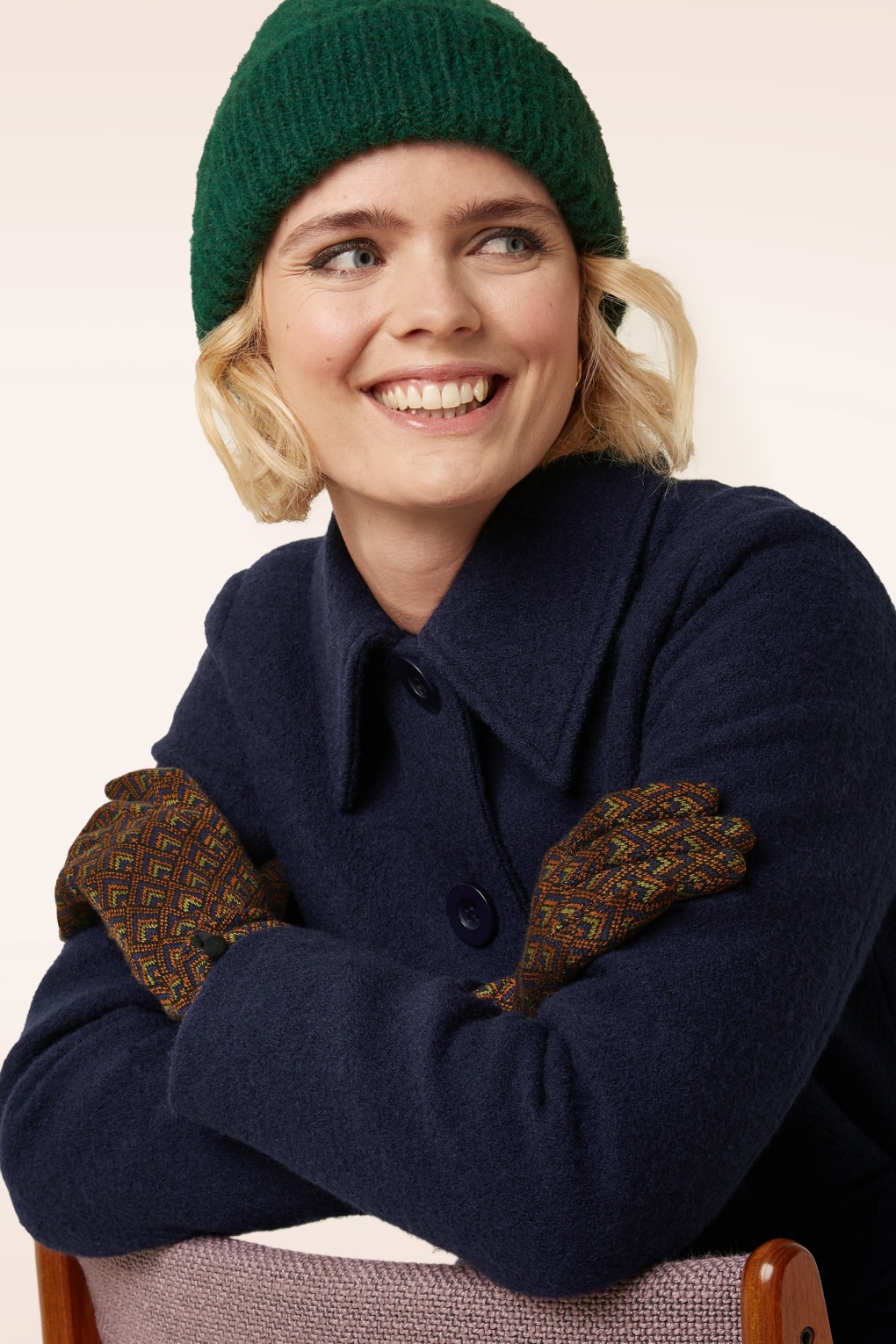 Maak je vintage winter look compleet met deze classy handschoentjes. Gemaakt van lekker zacht en stretchy acryl met een kleurrijke retroprint en afgewerkt met zwarte biesjes en een knoopje bij de pols. * Zacht, warm en stretchy * Zwarte biesjes * Stoffen knoopje