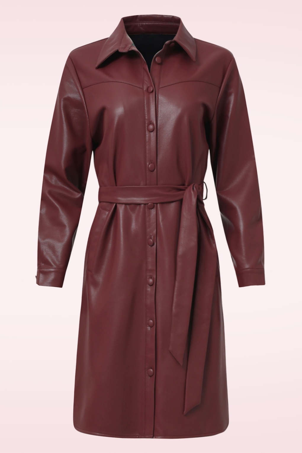 ”Faux is the only way to go!” Doorknoopjurk Terry is uitgevoerd in een stevige maar toch soepele imitatie lederen stof in bordeauxrood met een lichte stretch die heerlijk draagt. * Loose-fit a-lijn jurk * Puntig kraagje * Lange mouwen * Knopenreeks * Zachte voering * Afneembare strikband voor een extra ‘snatched’ taille * Valt bij een lengte van 1,70 m tot net boven de knie * Let op; de kleur van het product op de video kan afwijken van de daadwerkelijke kleur van het product