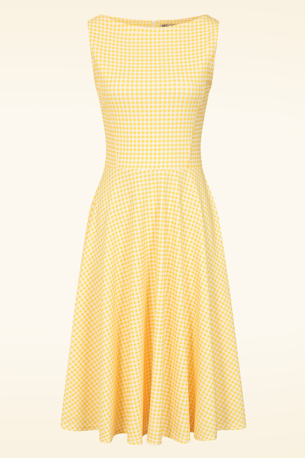 Topvintage exclusive ~ Julie Gingham swing jurk in geel en wit