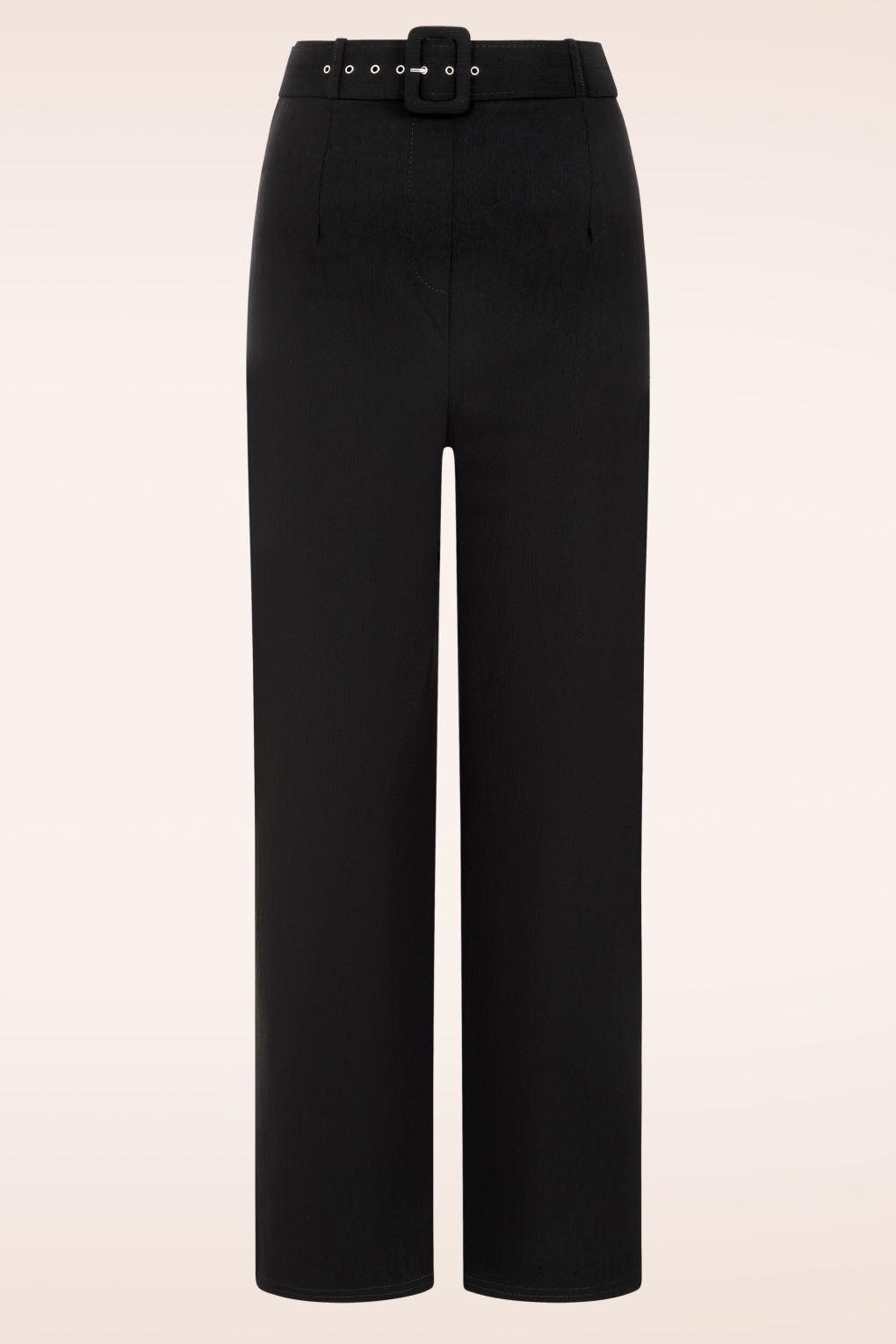 Deze Sasha pantalon is een echte must-have! Dit high-waist model heeft lange, wijde broekspijpen en is uitgevoerd in een heerlijke, stretchy zwarte bengaline-stof met subtiel structuurpatroon, die verrassend comfortabel draagt. * Flatterende hoge taille * Afneembare riem, voor een extra ‘snatched’ taille * Blinde rits achterzijde * Lange, wijde pijpen * Exclusief bij Topvintage verkrijgbaar