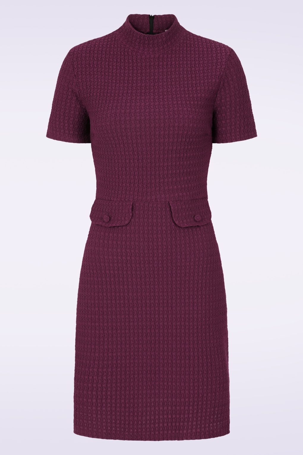 ”Release your MOD-ern fashionista!” 😉 Tessa is uitgevoerd in een iets dikker, stretchy, grof geweven, gerecyclede auberginepaarse stof, die heerlijk draagt. * A-lijn model * Iets opstaand kraagje * Korte mouwtjes * ‘Faux’ klepzakjes * Blinde rits achterzijde * Gerecycled polyester * Valt bij een lengte van 1.70 m net boven de knie * Exclusief bij Topvintage verkrijgbaar