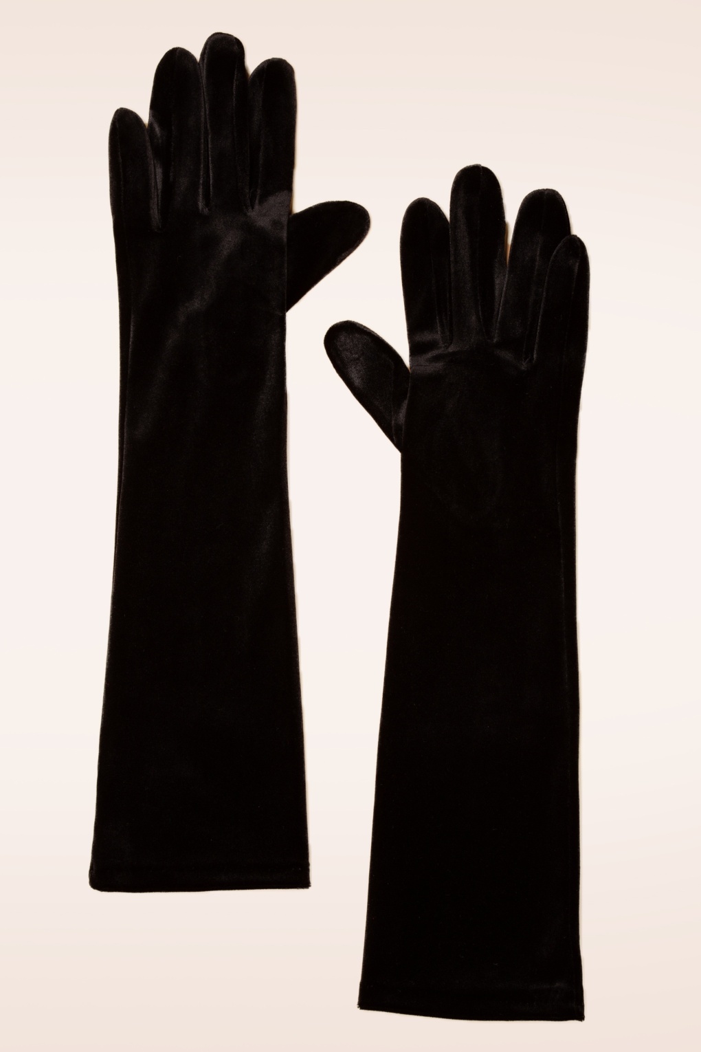 Deze 50s Victoria Velvet Handschoenen in Zwart zijn super elegant en maken je (gala) outfit helemaal af! Ze komen tot de elleboog, zakken niet af en sluiten perfect aan dankzij het stretchy, zwarte fluwelen stofje. Vintage perfection! * One size * Fluweel * Stretchy