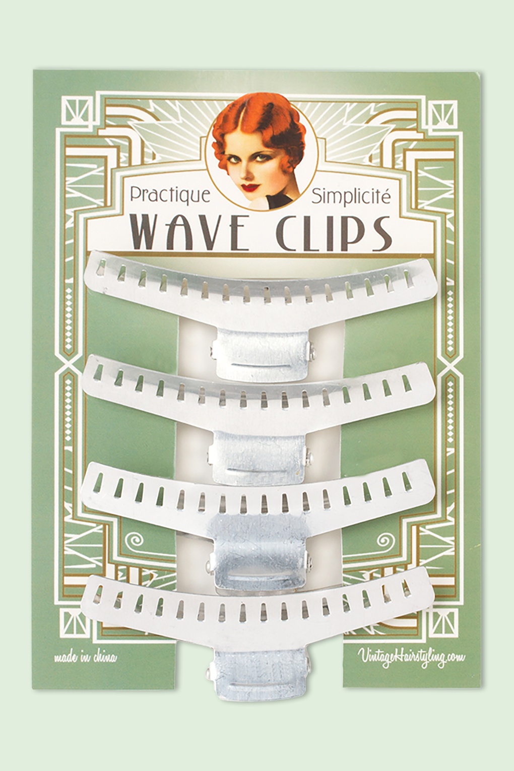 Deze Practique Wave Clips van Lauren Rennells zijn super handige klemmen die het creëren van een vintage kapsel een stuk makkelijker zullen maken! Deze klemmen houden de golf op haar plek tijdens het drogen van je haar voor een optimaal resultaat. Deze set bestaat uit vier roest-en vlekbestendige zilverkleurige, gebogen klemmen met ventilatie gaatjes voor een snelle droogtijd. En iedere vintage loving lady zal dit beamen: Als je haar maar goed zit! 😉 * Voor het creëren van vintage golven * Zilverkleurig metaal * 4 gebogen klemmen * Ventilatie gaatjes * Roest- en vlekbestendig