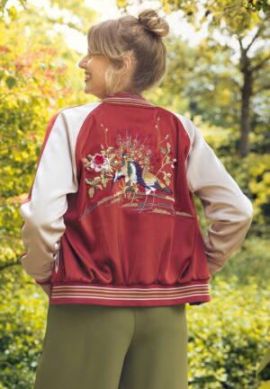 Bessie Gamine Velvet bomber jasje in bordeauxrood