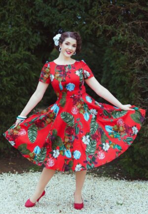 Scarlet Garden swing jurk in rood en multi