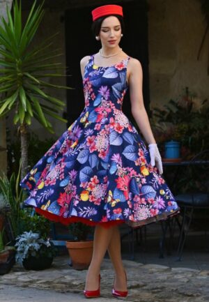 Butterfly Garden swing jurk in marineblauw en multi