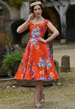 Tangerine Blossom swing jurk in oranje