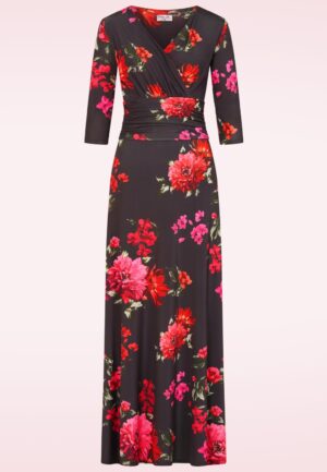 Topvintage exclusive ~ Vivian Floral maxi jurk in zwart en multi