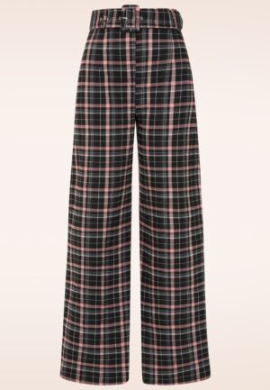 Topvintage exclusive ~ Sasha Pink Check pantalon in zwart