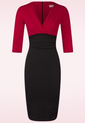 Topvintage exclusive ~ Nehla Pencil jurk in zwart en rood