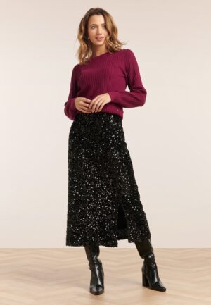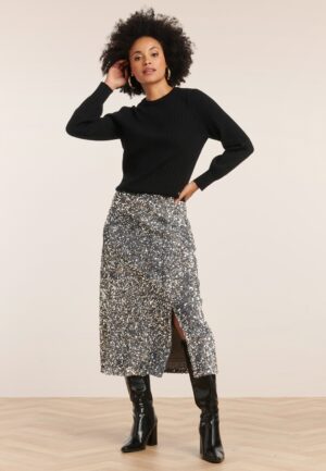 Senna midi rok met pailletten in zwart