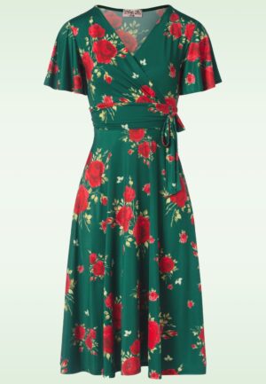 Topvintage exclusive ~ Irene Floral overslag swing jurk in zijdeachtig green