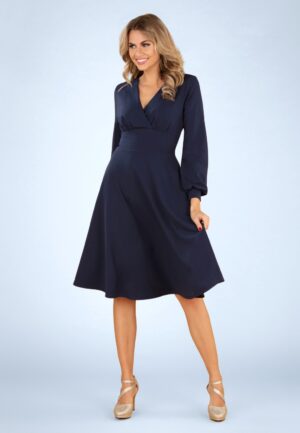 Topvintage exclusive ~ Irene Cross Over swing jurk in marineblauw