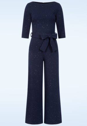 Topvintage exclusive ~ Irina glitter jumpsuit in marineblauw
